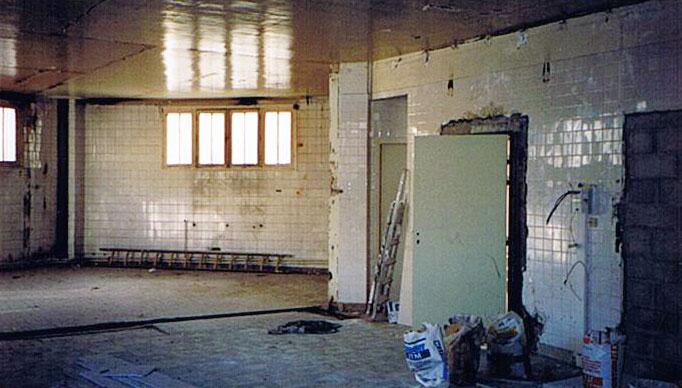 Le sol est traité en béton, avec un mélange de ciment blanc et sable polis, quadrillé en 2m par 2m avec des joints en inox. Il participe à la sensation d'espace et amène par son traitement et sa couleur ainsi que son côté minéral, de la douceur au lieu et une sérénité quasi monacale.