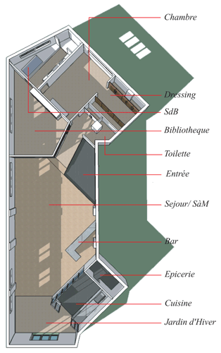 Le défi est de ne jamais fermer l'espace et conserver le volume, afin de redonner toute la dimension de LOFT.