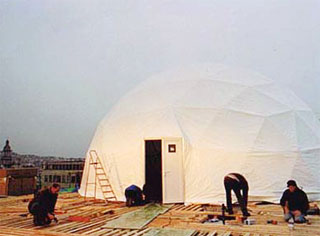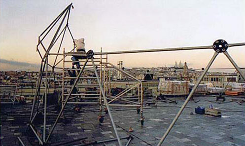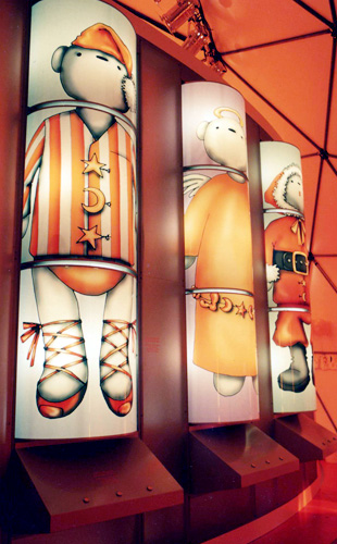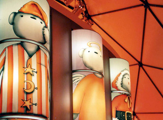 Création d'un espace d'accueil dédié aux enfants sur le toit du PRINTEMPS pour le passage de Noël à l'an 2000.
