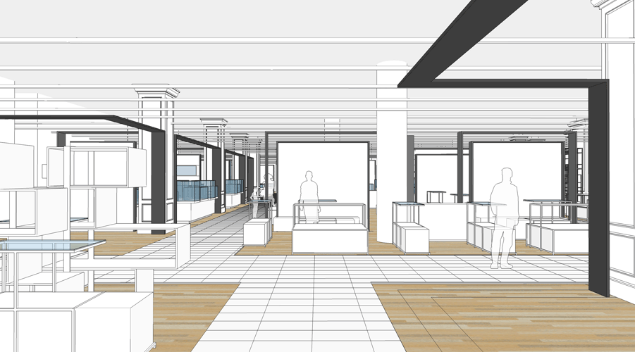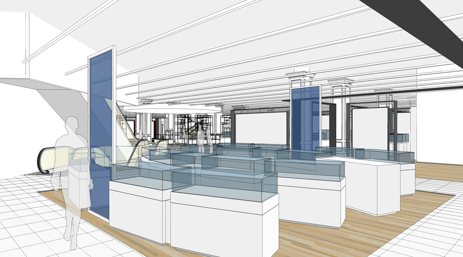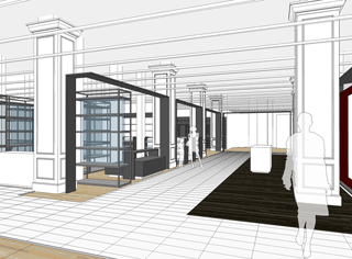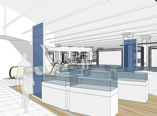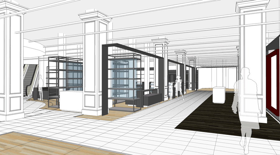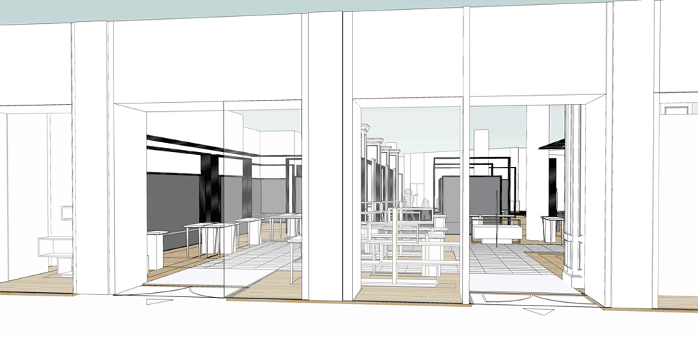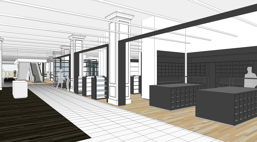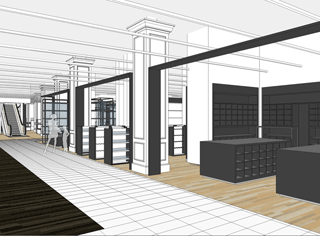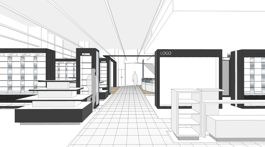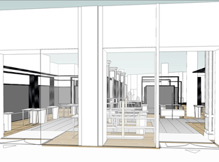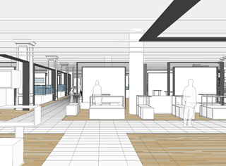 Préparation des plans des nouvelles surfaces des marques, du cahier des charges des éléments architecturaux et techniques.