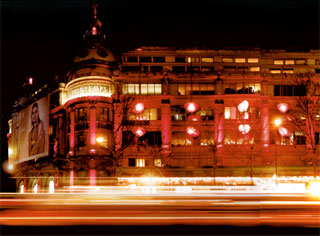 Des immenses coeurs accrochés sur la façade clignotent au rythme d'une bande son produisant le battement poétique du coeur.